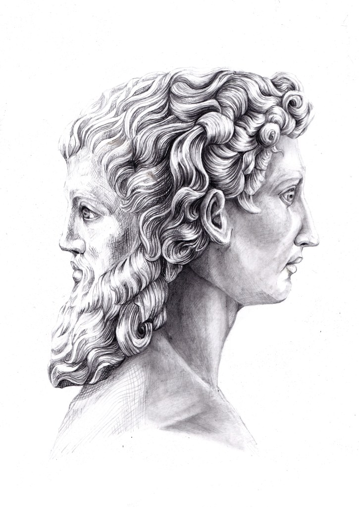 Cover Image: Old and New Money – Cash and Digital Money embodied in Janus, a Greek god.